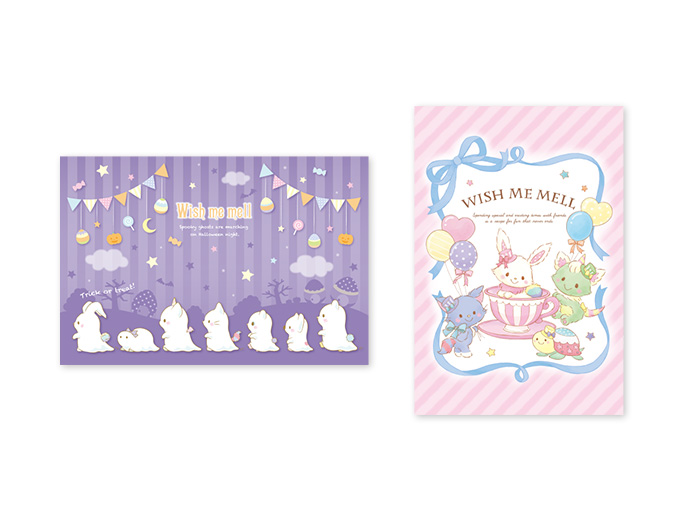 「ウィッシュミーメル」の可愛いアートが描かれたポストカード。