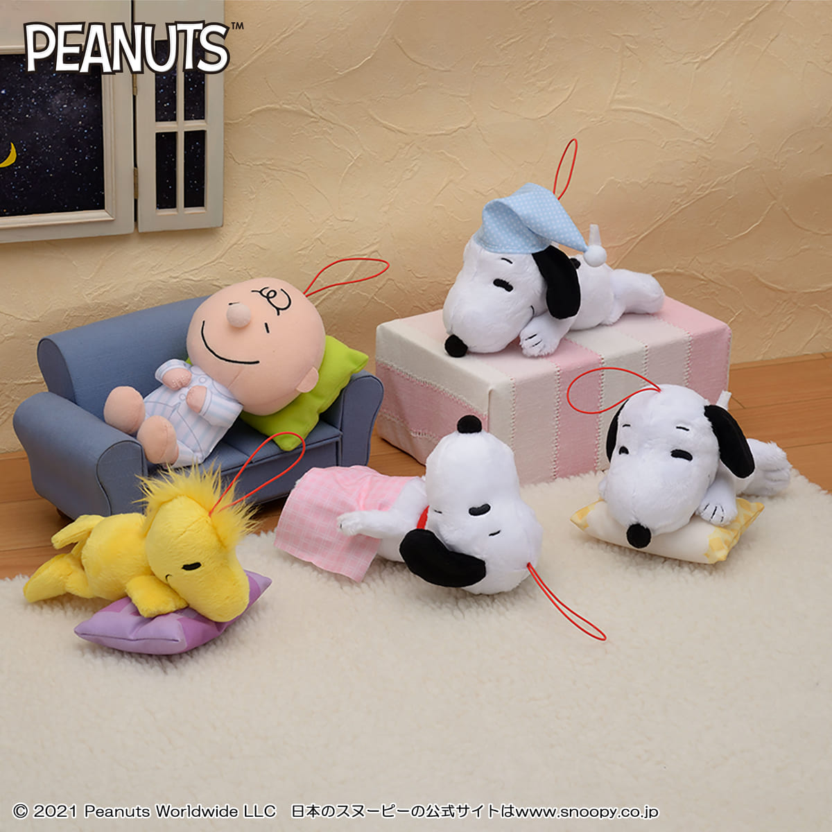すやすや&おやすみポーズが魅力の「スヌーピー」のぬいぐるみ!