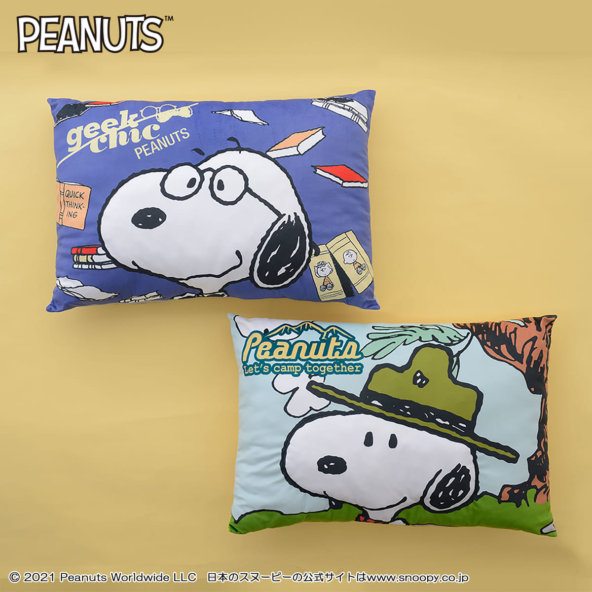 「スヌーピー」のポップなロゴ入りデザインのクッションが登場!