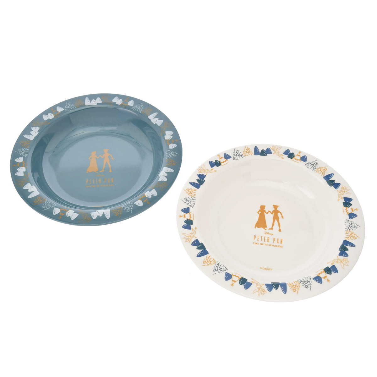 「ピーター・パン」と「ウェンディ」が手を取り見つめ合うシーンがプリントされたプレート2枚や