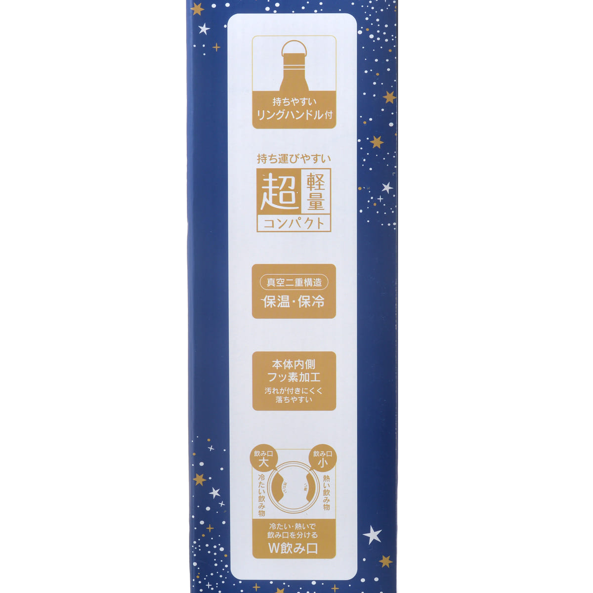 夜空をイメージした美しい光沢の瓶型ボトルに、作品の名シーンがプリントされています。