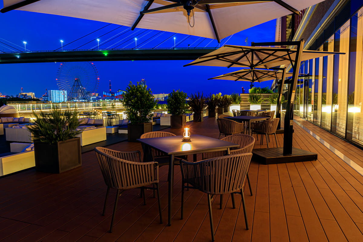 安治川沿いのテラスで心地よい風に吹かれながら、秋の味覚を堪能できる贅沢時間が過ごせます☆