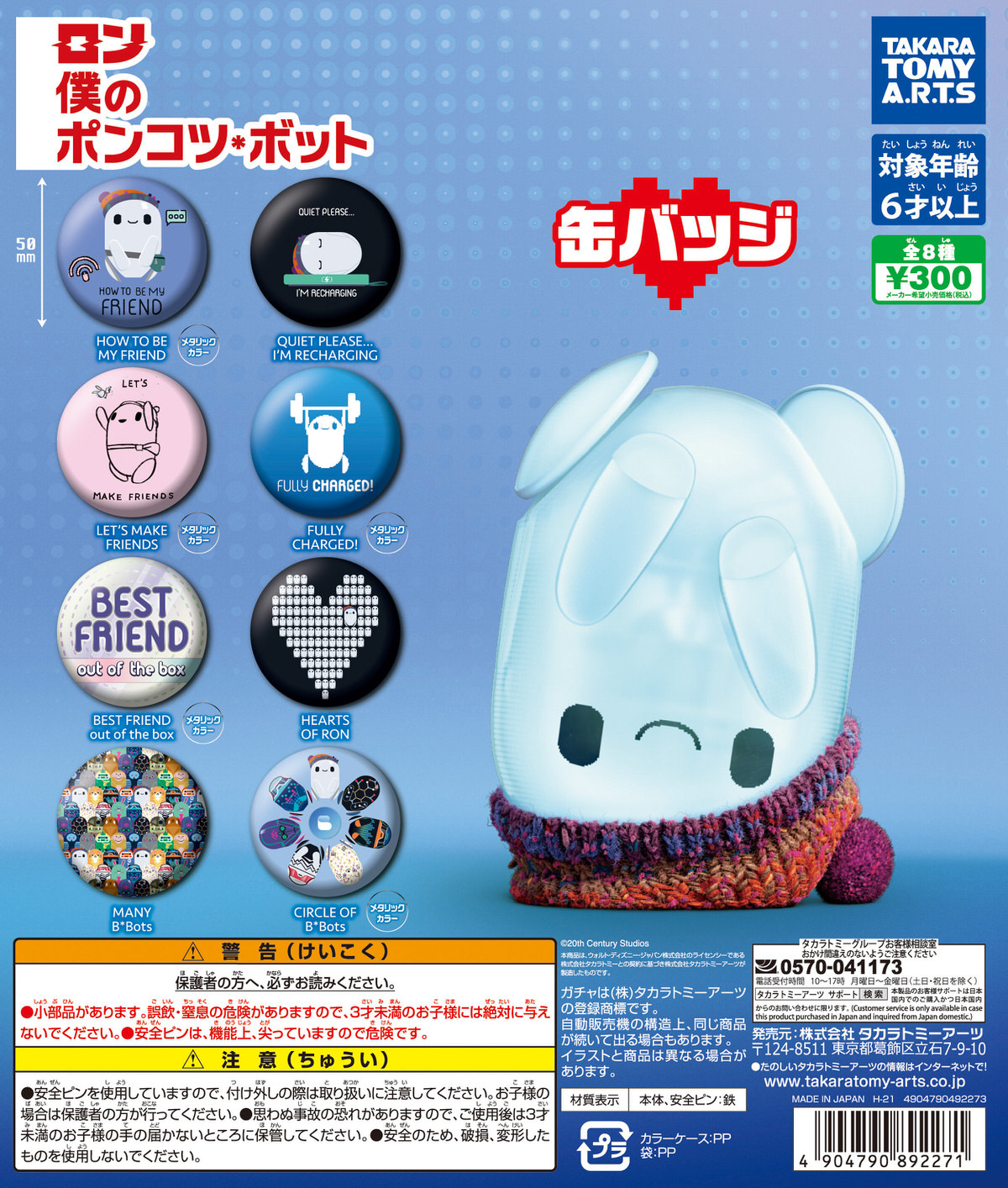 種類:全8種(「HOW TO BE MY FRIEND」 「QUIET PLEASE…I'M RECHARGING」 「LET'S MAKE FRIENDS」 「FULLY CHARGED!」 「HEARTS OF RON」 「MANY B*Bots」 「CIRCLE OF B*Bots」 「BEST FRIEND out of the box」)