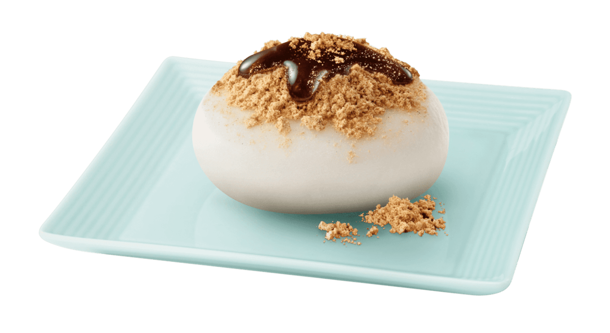 優しい甘さに仕上げたコク深いミルクアイスクリームに、ローストしたクルミを加わり、天面にはやわらかいもちと、甘じょっぱいみたらしソースがトッピングされています。