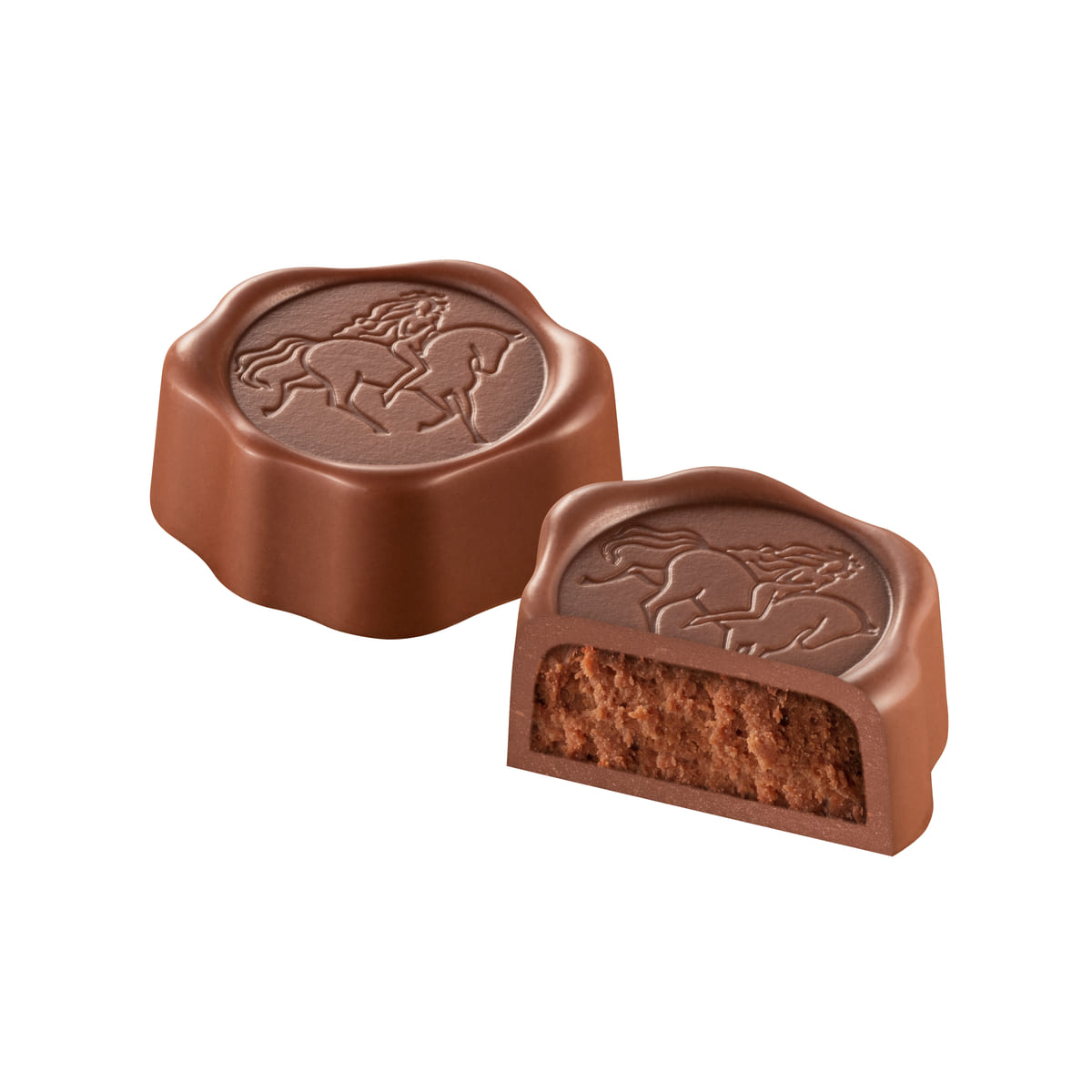 チョコレートのトップにはレディ・ゴディバの姿が刻印されています。