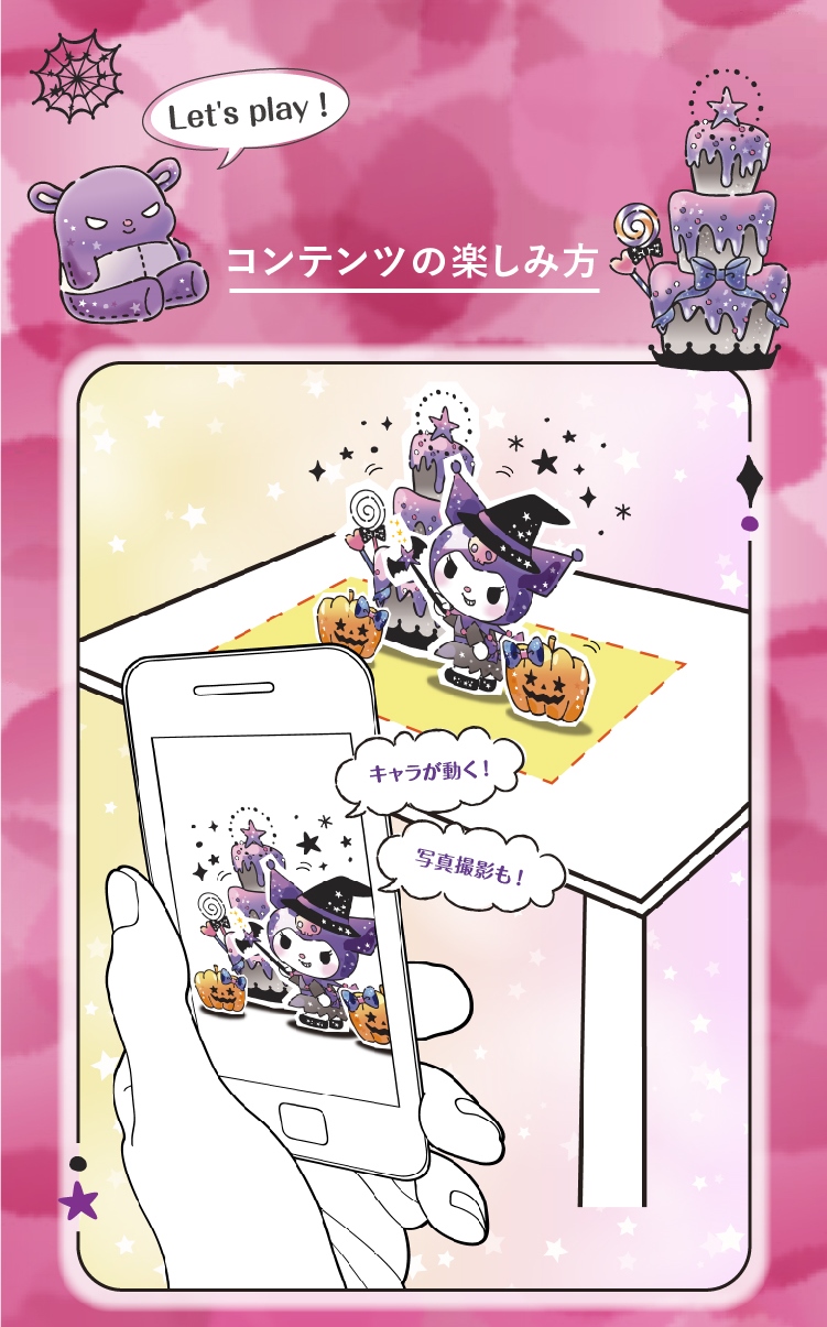 ゴディバ カメラ(AR拡張現実)で「クロミ」のハロウィンパーティーに参加しているような仮想体験ができる、小さな子どもから大人まで楽しめる仕掛けが隠されています!