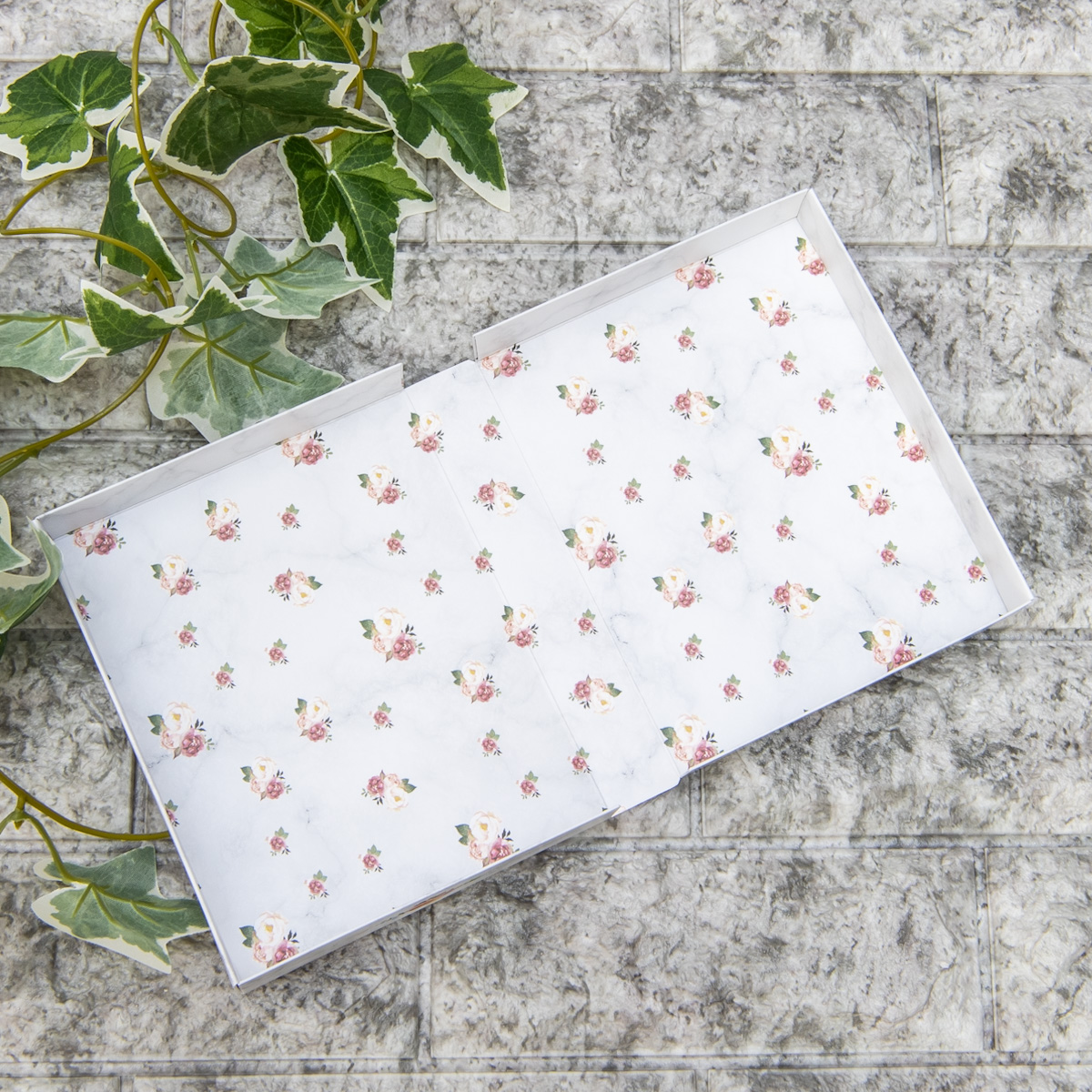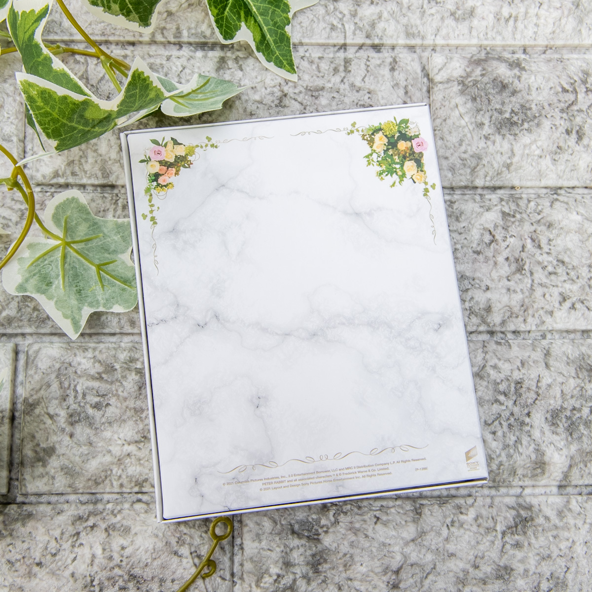 大理石風の白いボックスには、ピーターたちを囲むようにお花がいっぱい!