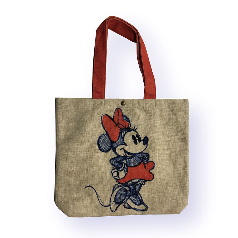 パイカットアイの「ミニーマウス」をラフスケッチ風に描いたアートを使用した「ヨコ型トートバッグ」