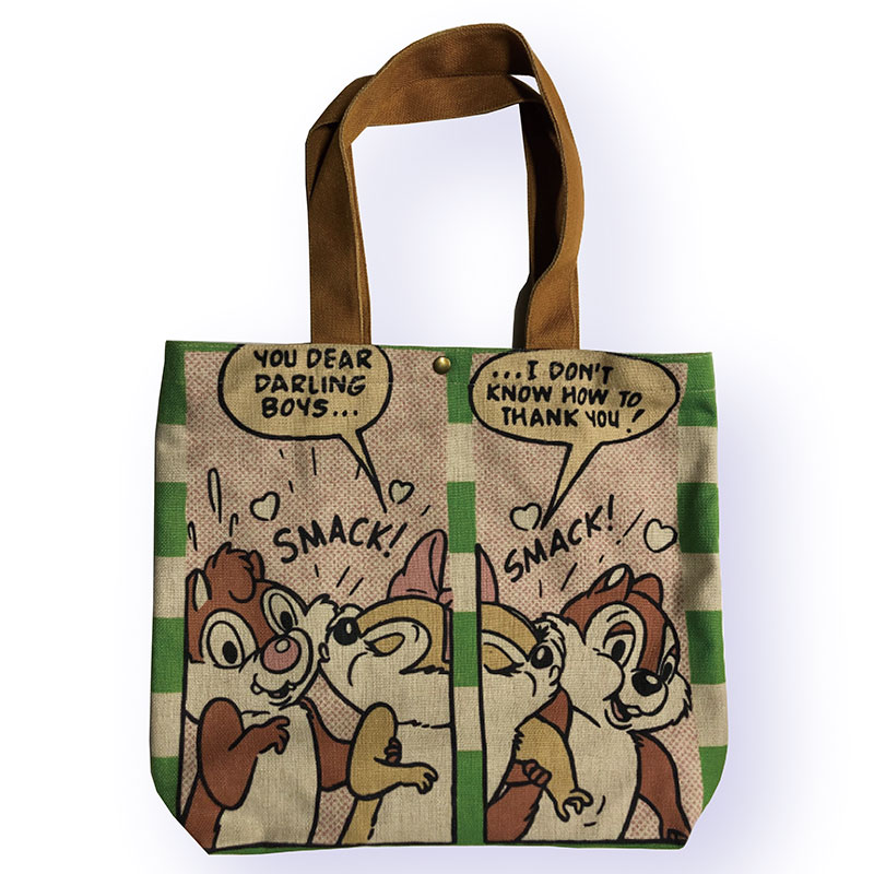 いたずら好きのシマリスコンビ「チップ&デール」のアメコミ風アートをあしらった「ヨコ型トートバッグ」