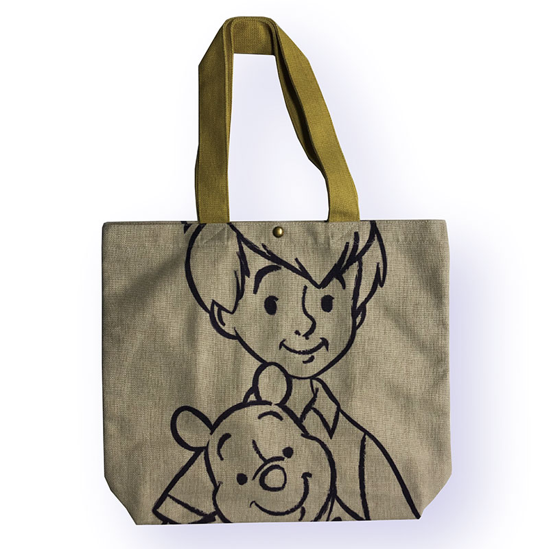 にっこりとほほ笑む「プーさん」と「クリストファー・ロビン」のラインアートをあしらった「ヨコ型トートバッグ」