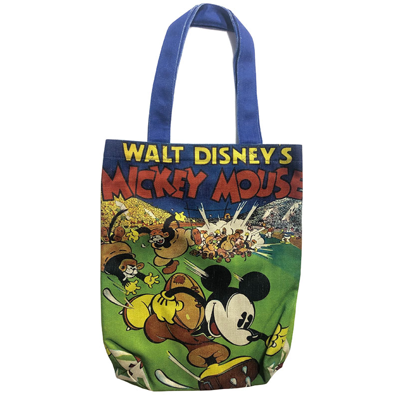 アメフトでタッチダウンを華麗に決める「ミッキーマウス」をカラフルにデザインした「タテ型トートバッグ」