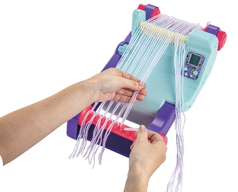 液晶画面と音声ナビの案内に沿って、タテ糸にヨコ糸を通し、織り進めることでニットアイテムが完成☆