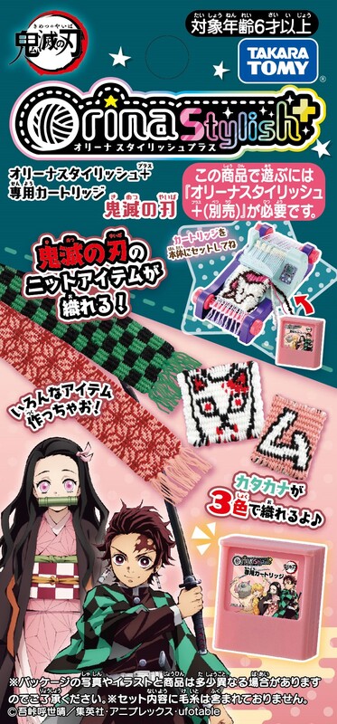 「鬼滅の刃」の専用カートリッジは、キャラクターの羽織などをイメージした柄10種類と、3色織りのカタカナを収録。
