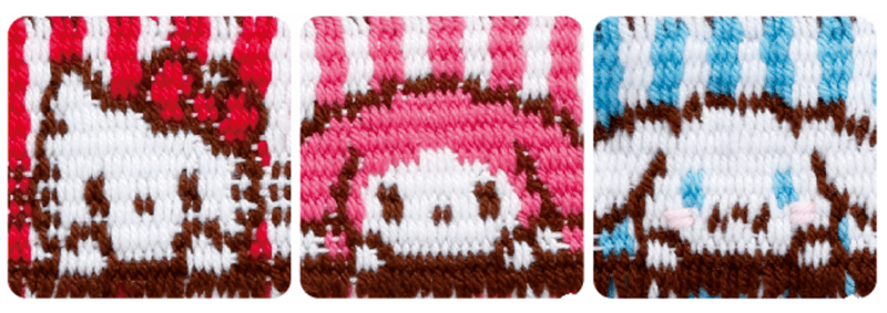 「サンリオキャラクターズ」の専用カートリッジを使えば、キャラクターのお顔デザインが織れます☆