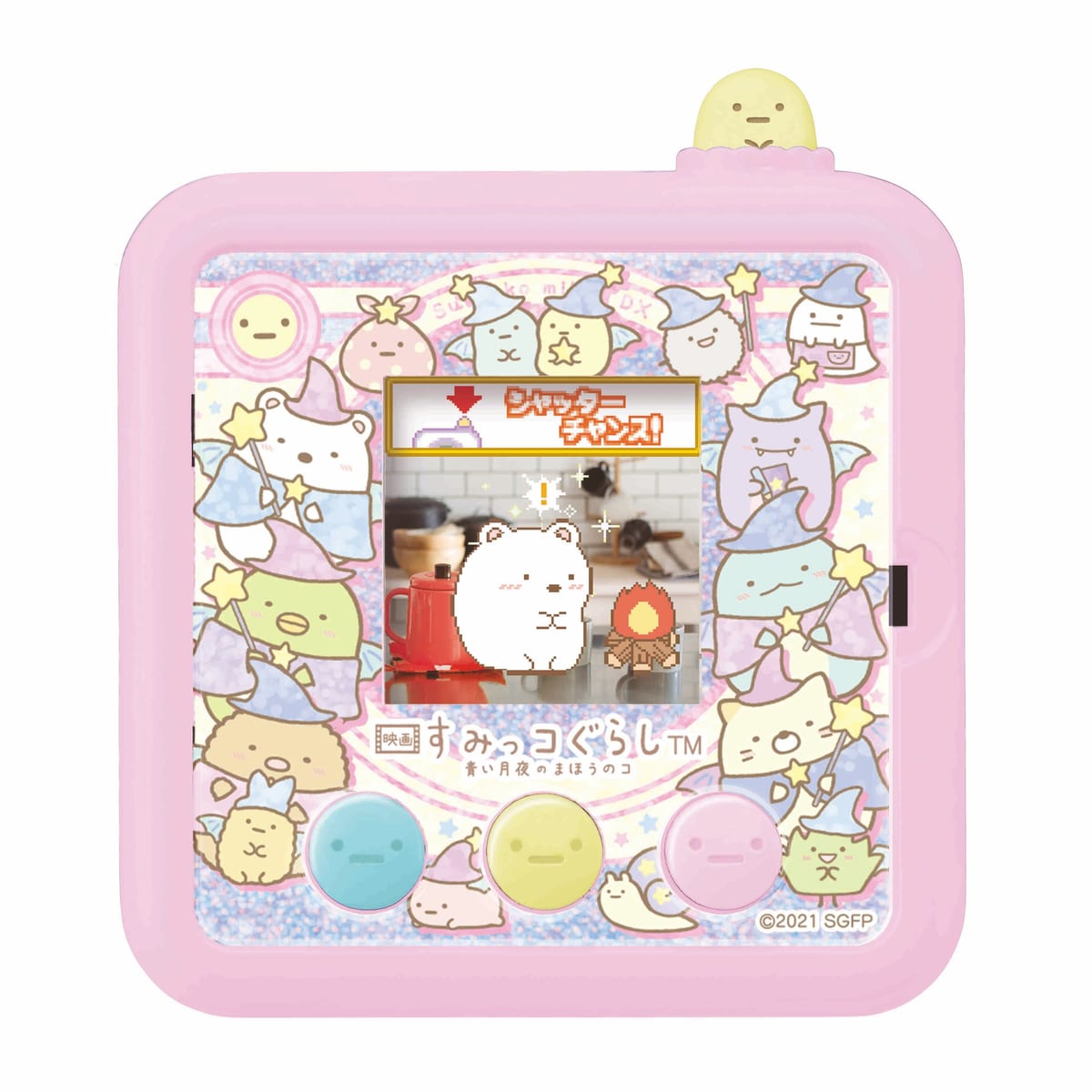 『映画 すみっコぐらし 青い月夜のまほうのコ』に登場するキャラクターがデザインされているほか、カメラ機能に新たに色認識機能が追加されました。