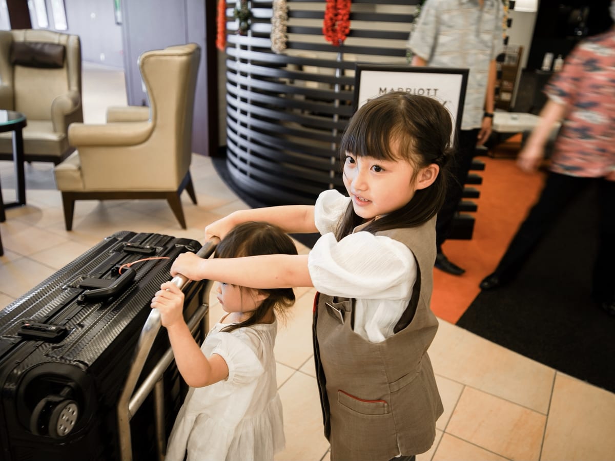 ホテルスタッフと一緒に、お子さんがベルサービススタッフを体験。
