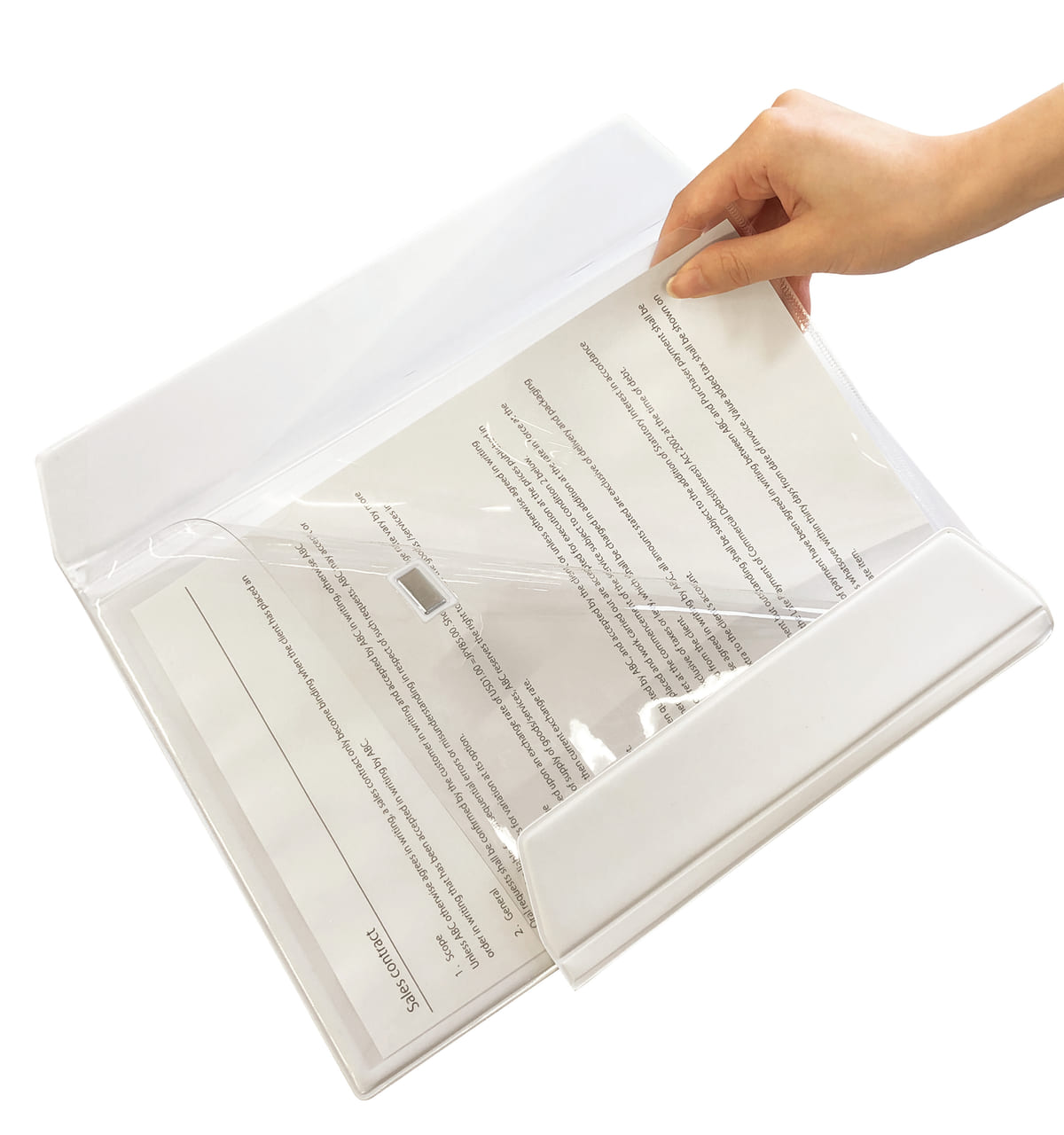 会議や外出時など、書類や筆記用具を持って移動する際に書類が折れることを防ぎ、マグネット製のフラップ(ふた)で開閉が簡単なグッズです。