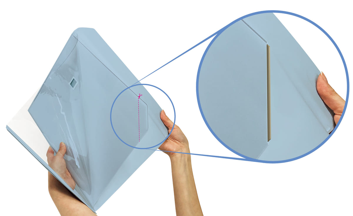 フラップをめくるだけで簡単に開き、表裏両方のフラップを開くと、開口部が大きく開くので、中身が取り出しやすくなります。