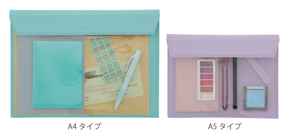 小物や書類を収納するのに便利なA4とA5の2サイズがラインナップ。