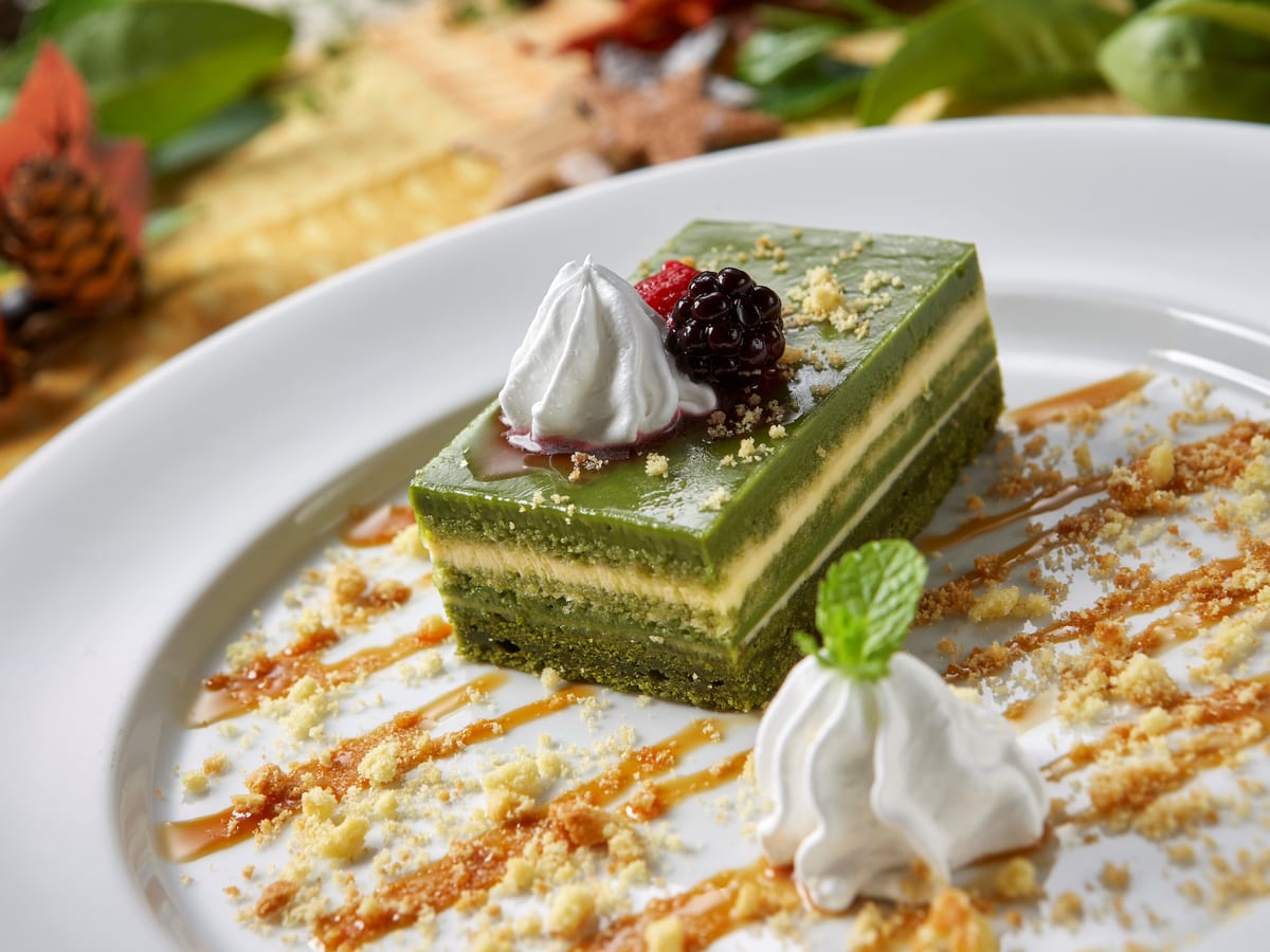 リッチなバタークリームや宇治抹茶ガナッシュなどで層を重ねたオペラ。