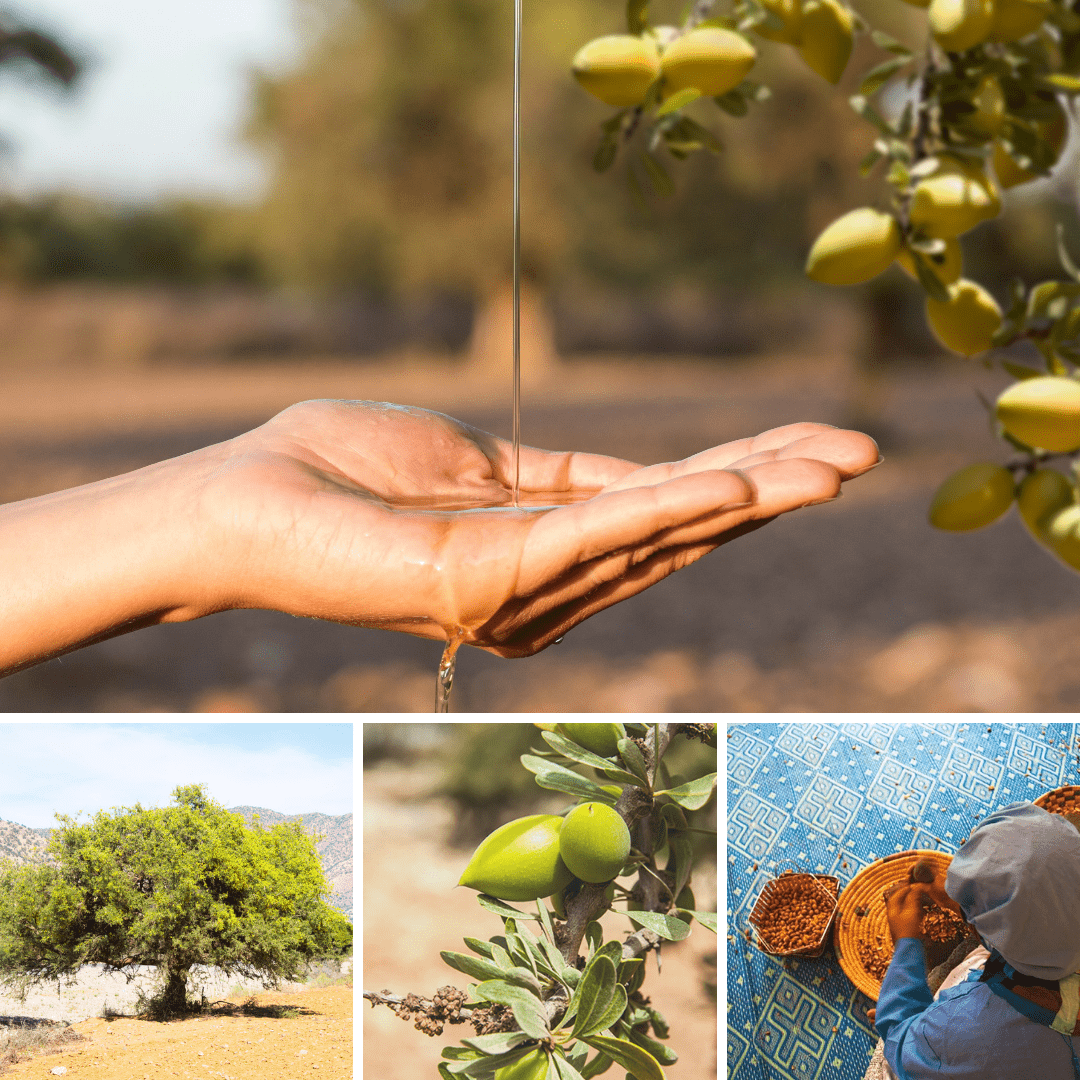 モロッコのエッサウィラ地区のアルガンの木の実の種を絞って抽出されるアルガンオイルです。