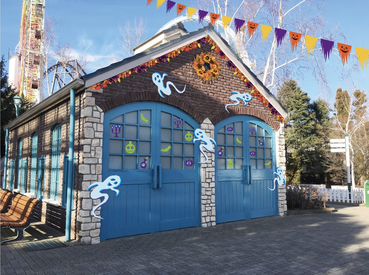 期間中の園内は、オレンジや紫のお花やフラッグでデコレーションされ、賑やかなハロウィンムードに包まれています。