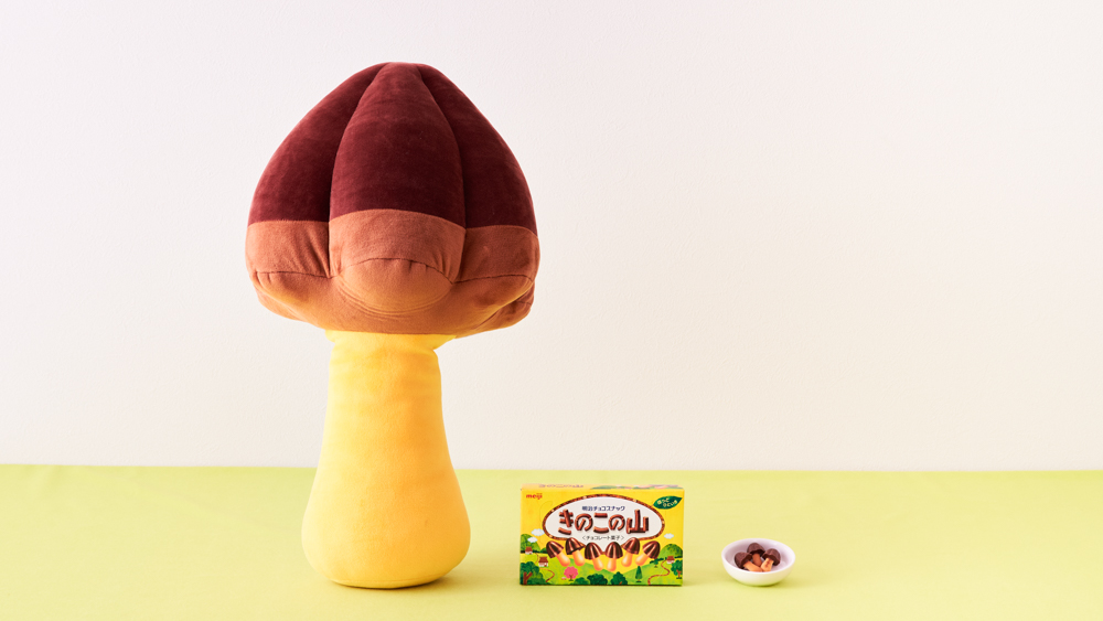 第1弾として、明治のロングセラー商品「きのこの山」と「たけのこの里」を立体化したぬいぐるみが受注生産で2種同時に登場です☆