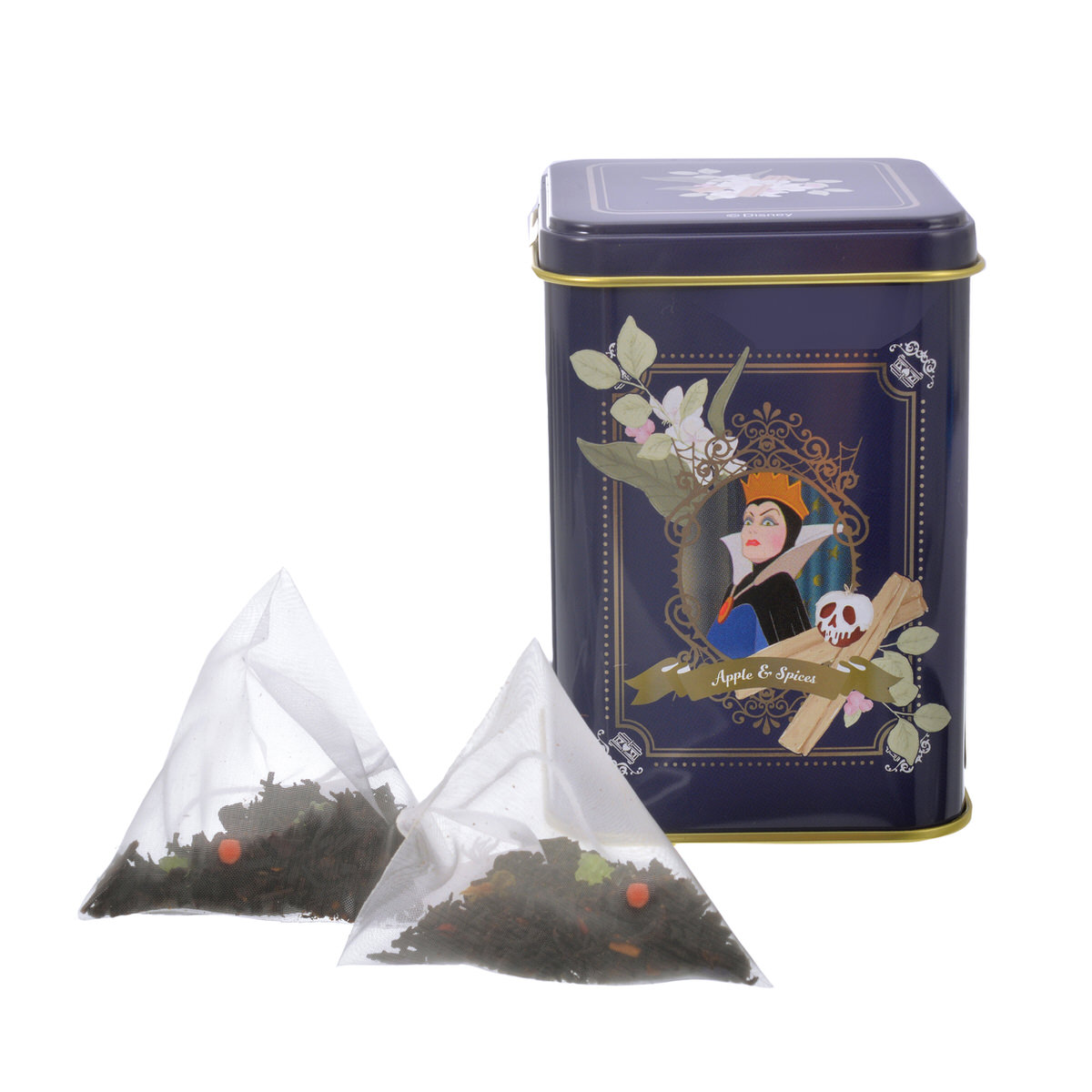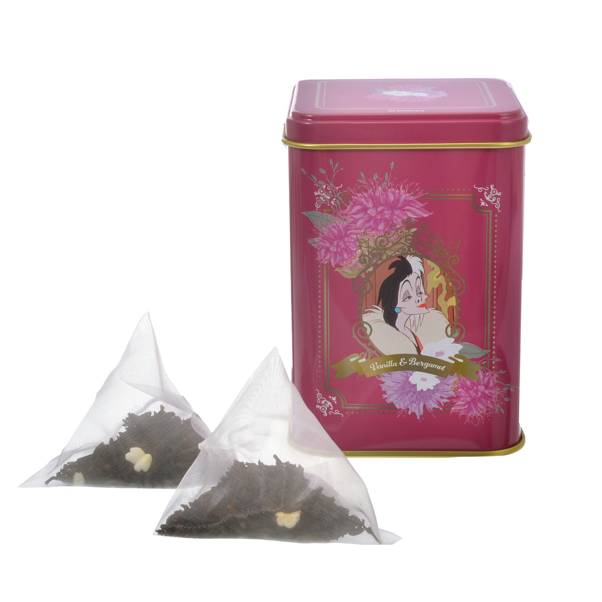 新たなフレーバードティーは、おしゃれな「クルエラ」を思わせる甘いバニラとベルガモットの香りと、『白雪姫』の「女王」をイメージした甘酸っぱいリンゴにシナモンを加えたスパイシーな香りの2種類。