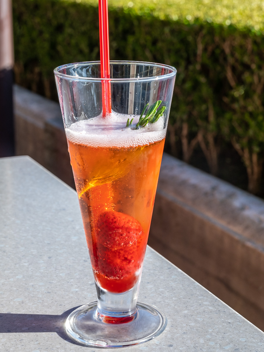 辛口のスプマンテに、ほのかに甘いイチゴのソースを加えたスパークリングワインのカクテル。