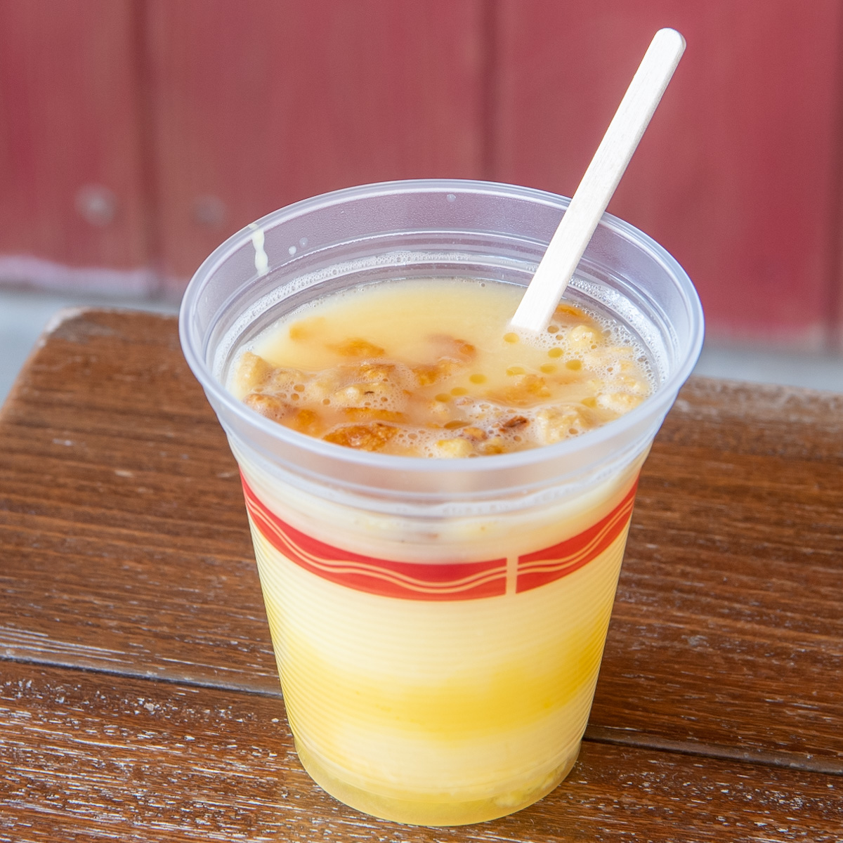 エッグノック風のカクテルには、グラノーラがトッピングされています。