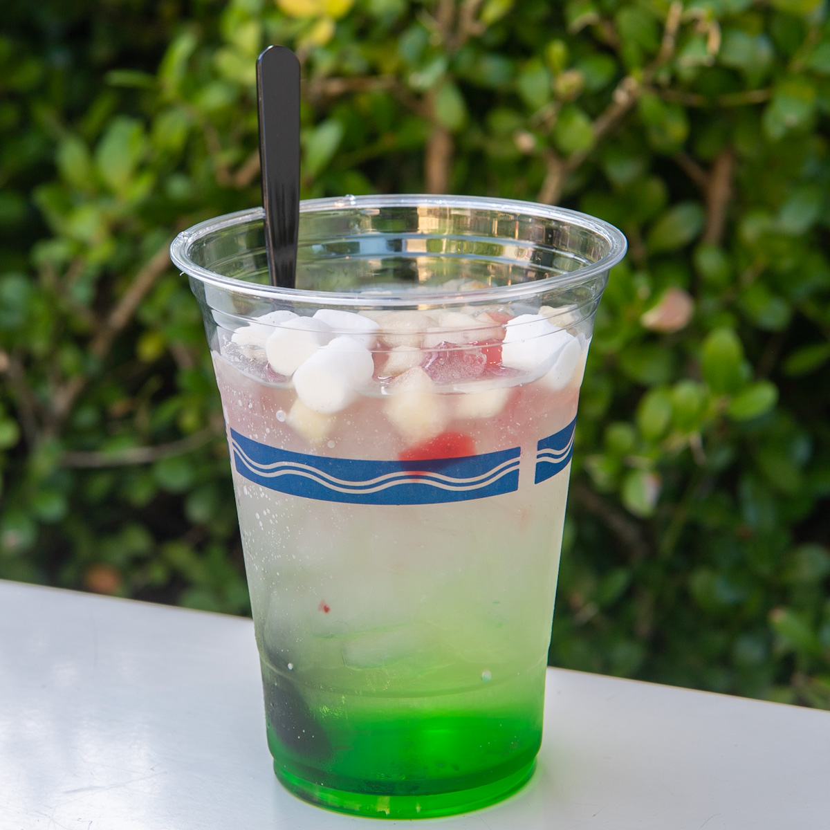 カクテルには、リンゴダイスやマシュマロがごろっとたくさんトッピングされています。