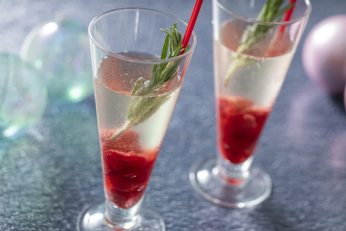 フリーズドライのいちごとミントでクリスマスらしさを演出したカクテル。