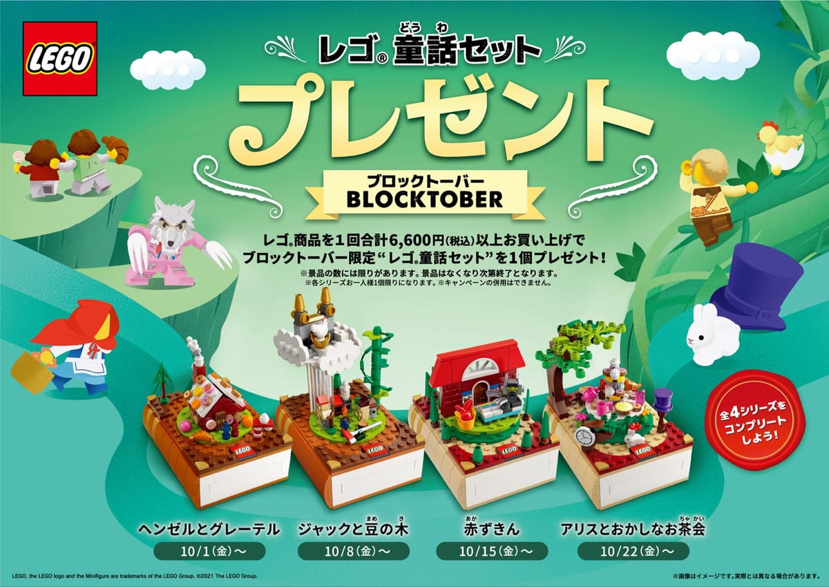 読書の秋にちなんで、童話モチーフのセットが数量限定で手に入るキャンペーンが、全国のレゴブランドストアなどで2021年10月1日(金)よりスタートします☆