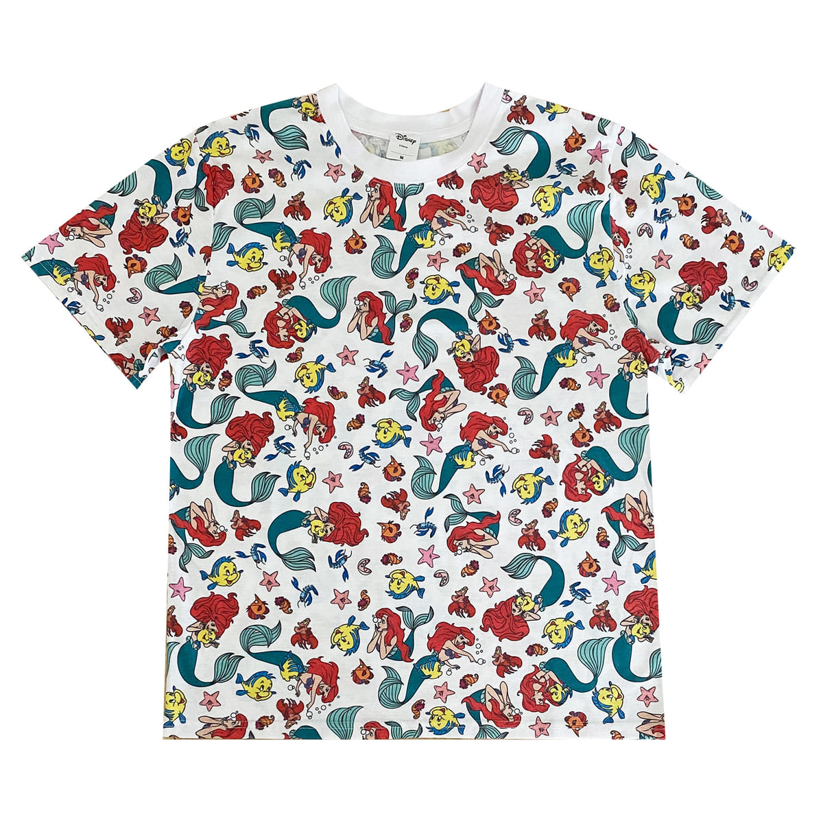 ディズニー映画『リトル・マーメイド』に登場するディズニープリンセス「アリエル」の総柄Tシャツ。