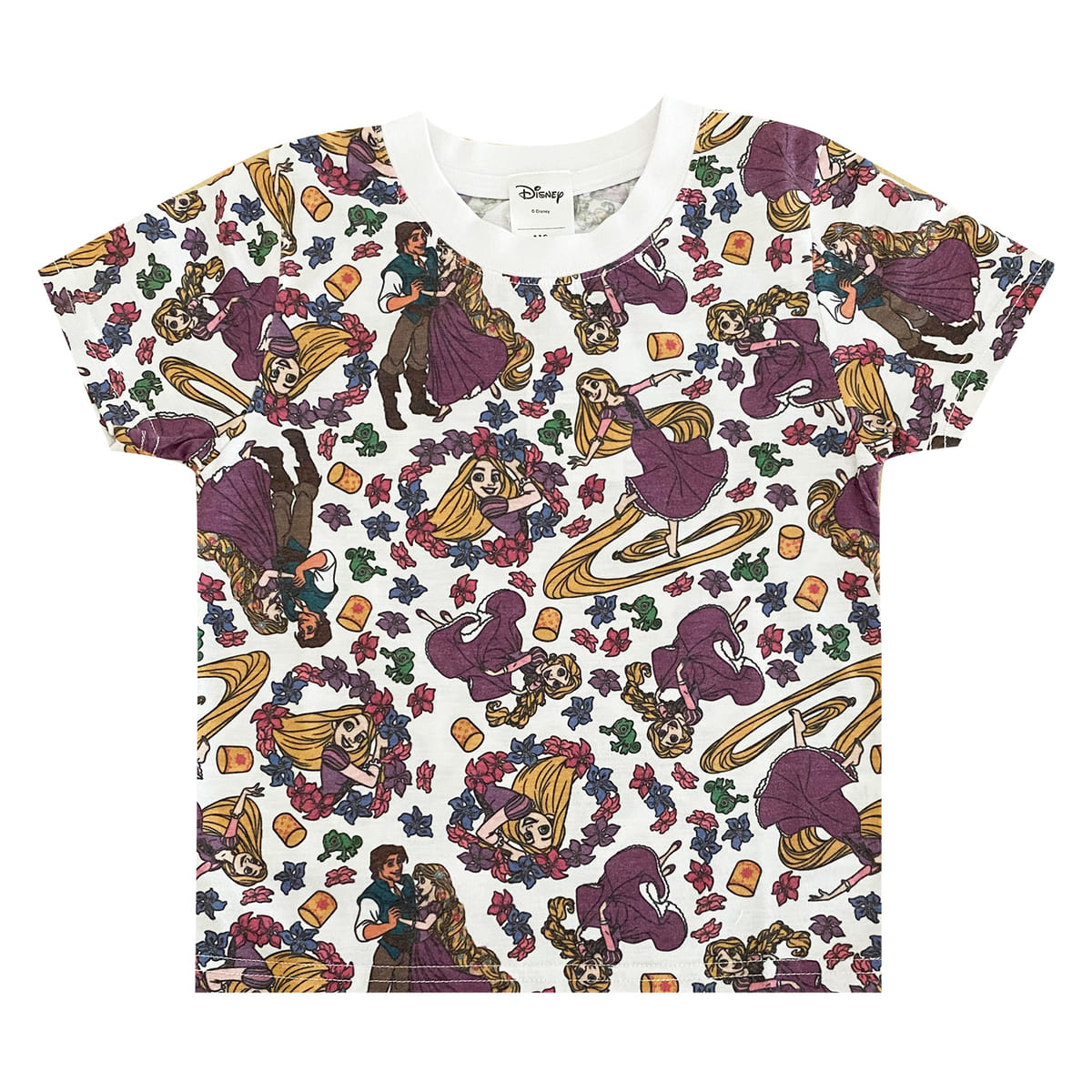 ディズニー映画『塔の上のラプンツェル』に登場するディズニープリンセス「ラプンツェル」をモチーフにした総柄Tシャツ。