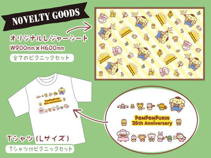 さらに、ピクニックにぴったりな限定デザインのレジャーシートや、キュートなポムポムプリンの姿がプリントされたTシャツなどノベルティ付きのチケットも2種販売。