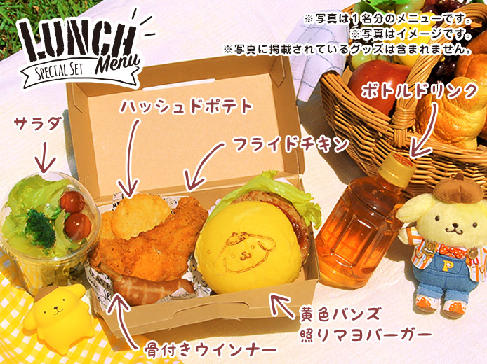 イベント当日は「ポムポムプリン」をイメージしたカラーが目を惹く「黄色バンズ照りマヨバーガー」や、骨付きウインナーやフライドチキンなどが入ったボリュームたっぷりな限定ピクニックメニューを提供。