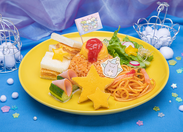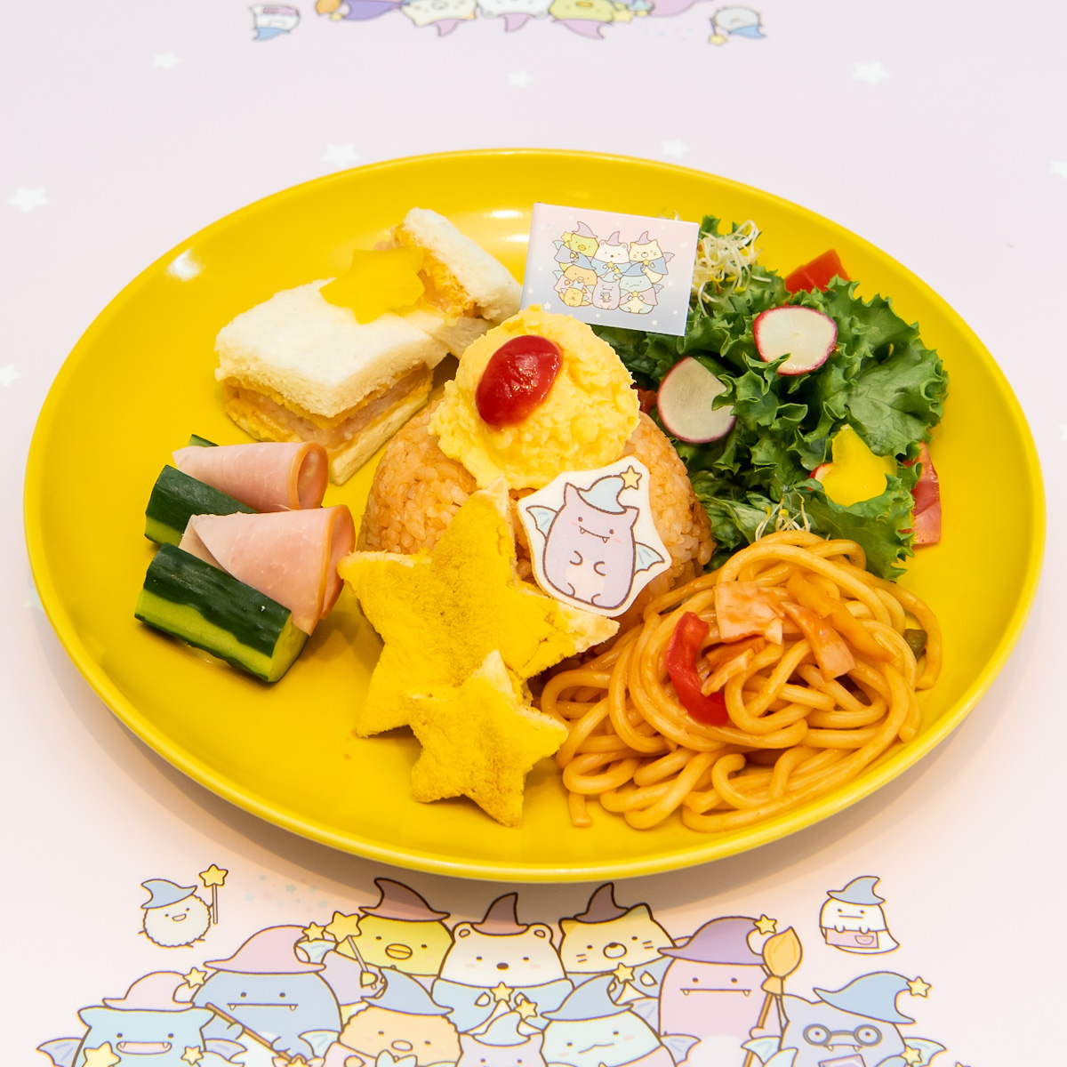 お子様ランチ風のプレートにはすみっコたちの推しのメニューがいっぱい乗った豪華なプレート。