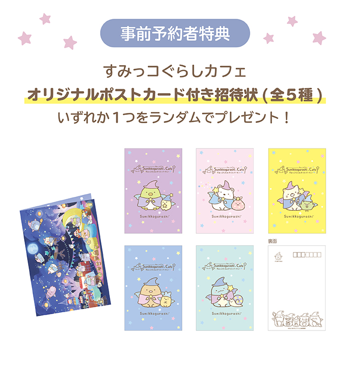 カフェのテーマ「すみっコたちのナイトパーティー」らしく、パーティーへの招待状をイメージして台紙入りで提供!