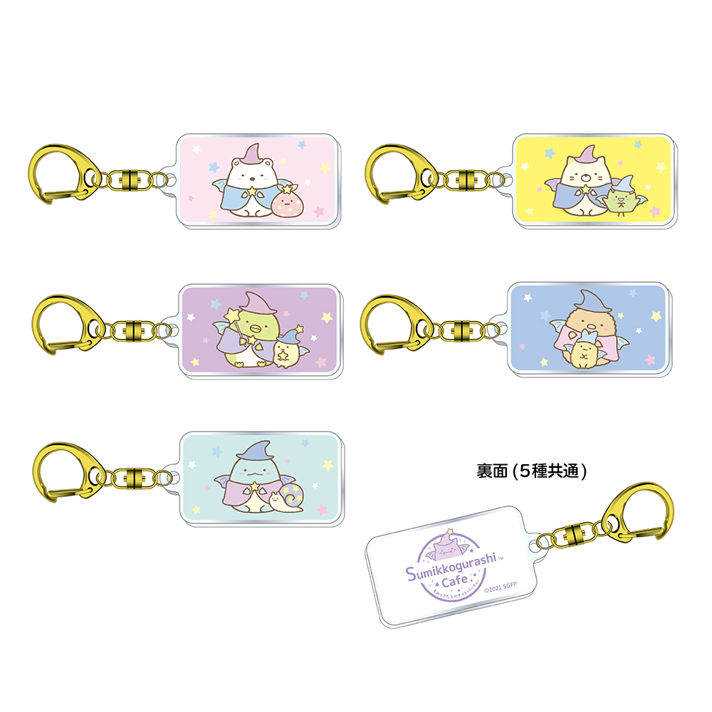 すみっコとみにっコがペアになったアクリルキーホルダー。