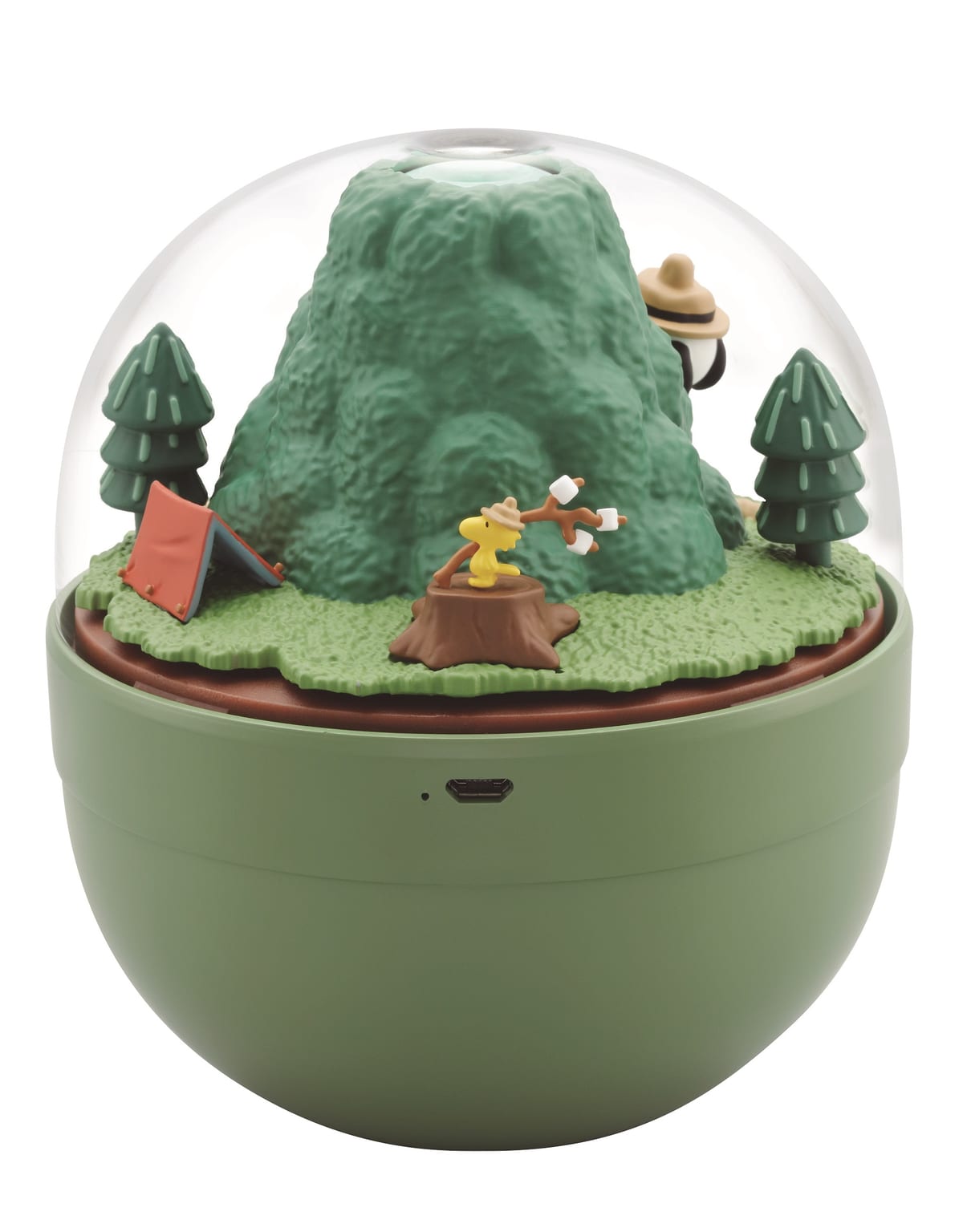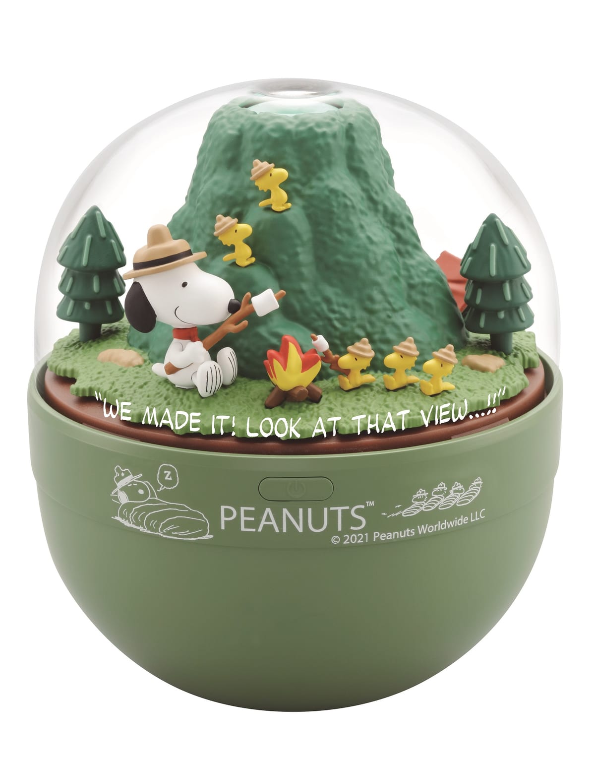 「ビーグル・スカウト」の世界観で、加湿器の蒸気を焚火の煙に見立てて、お家の中にいながらキャンプ気分を味わえる楽しいデザイン。