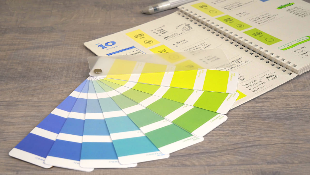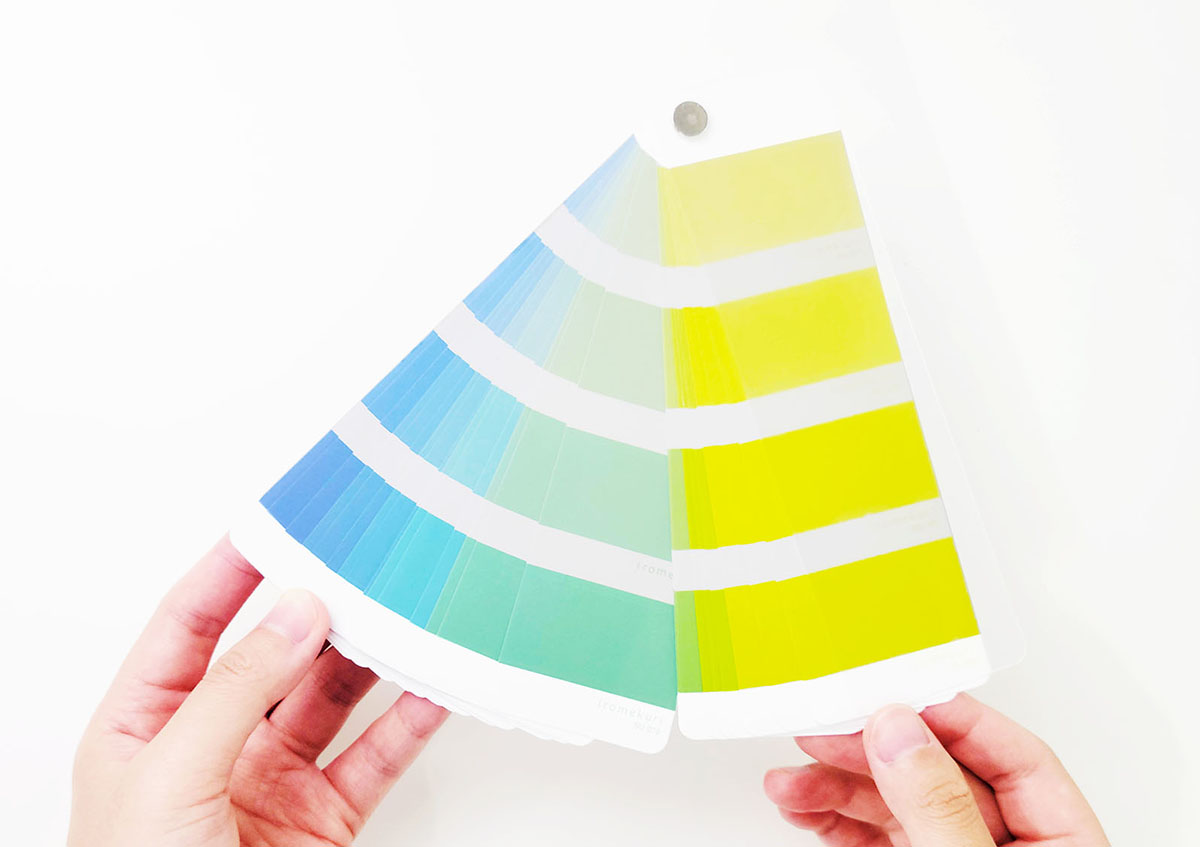 色見本帳のように綴じられたカードにカラーチップ型のシールが付いて、絶妙なグラデーションを楽しめます。