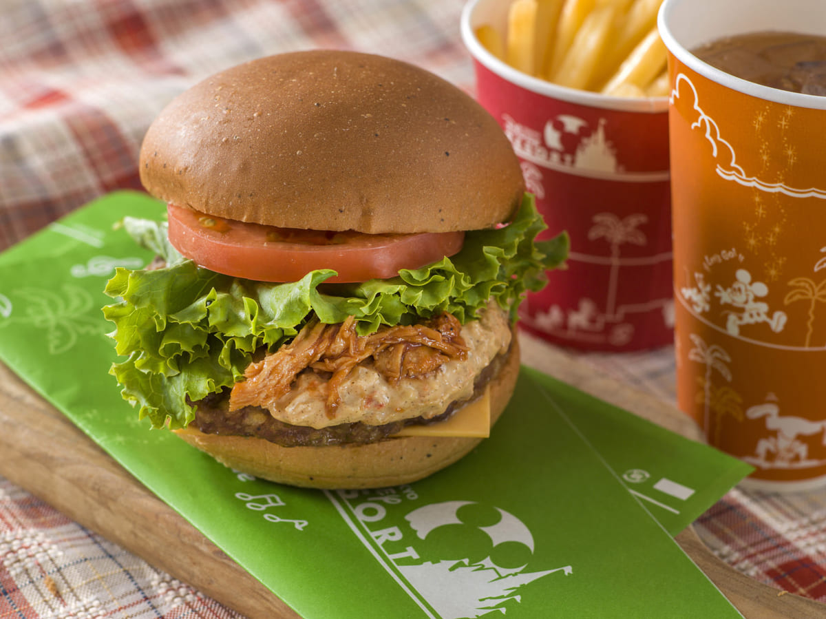 ダッフィーをイメージした紅茶風味バンズ!東京ディズニーシー「ケープコッド・クックオフ」プルドポーク・チーズバーガーセット