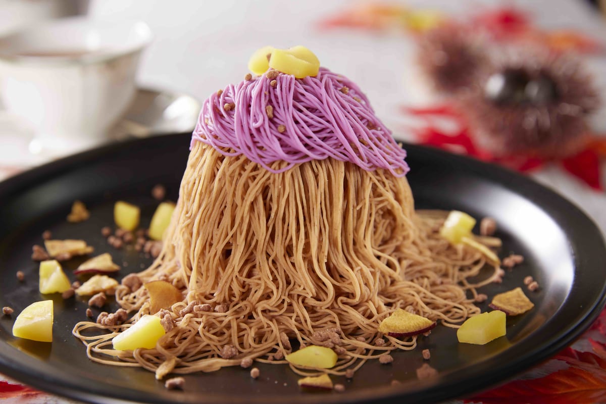 和栗に加え、紫芋ペーストをプラスした、贅沢な特製モンブラン。