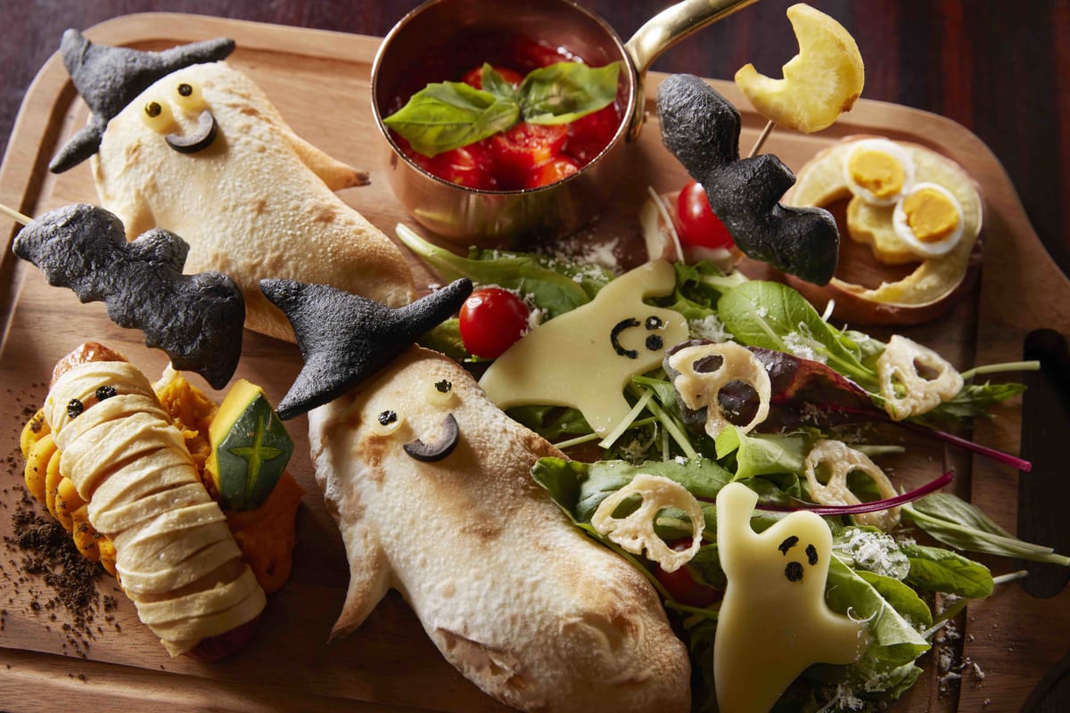 ハロウィーンに欠かせない、オバケやミイラ、コウモリにドクロといった仲間たちが揃ったプレートメニュー。