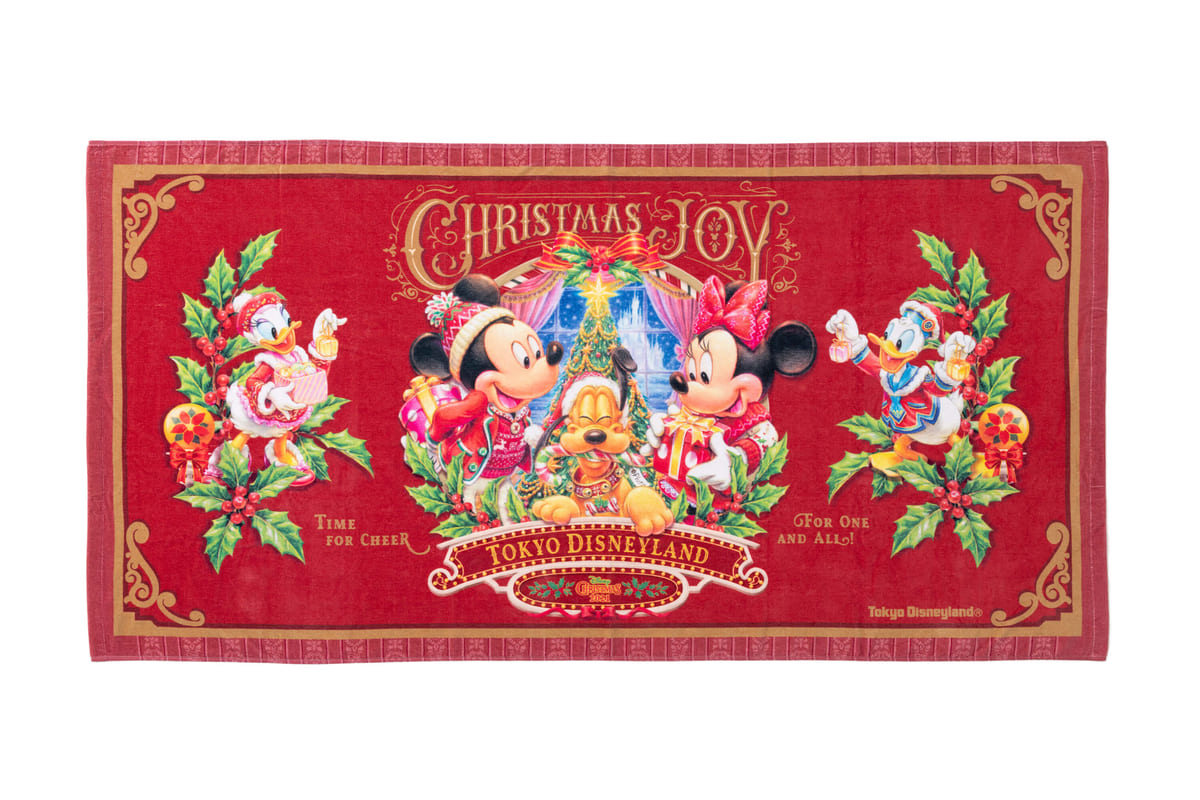 お互いにクリスマスプレゼントを用意した「ミッキー&フレンズ」がデザインされた大判のワイドバスタオル。