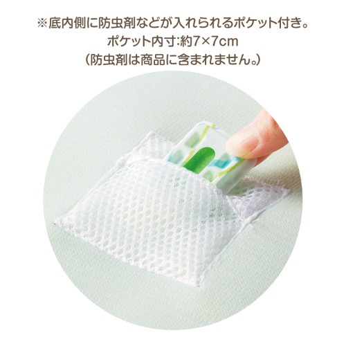 底内側に防虫剤などが入れられるポケット付きで、機能性もばっちりです。