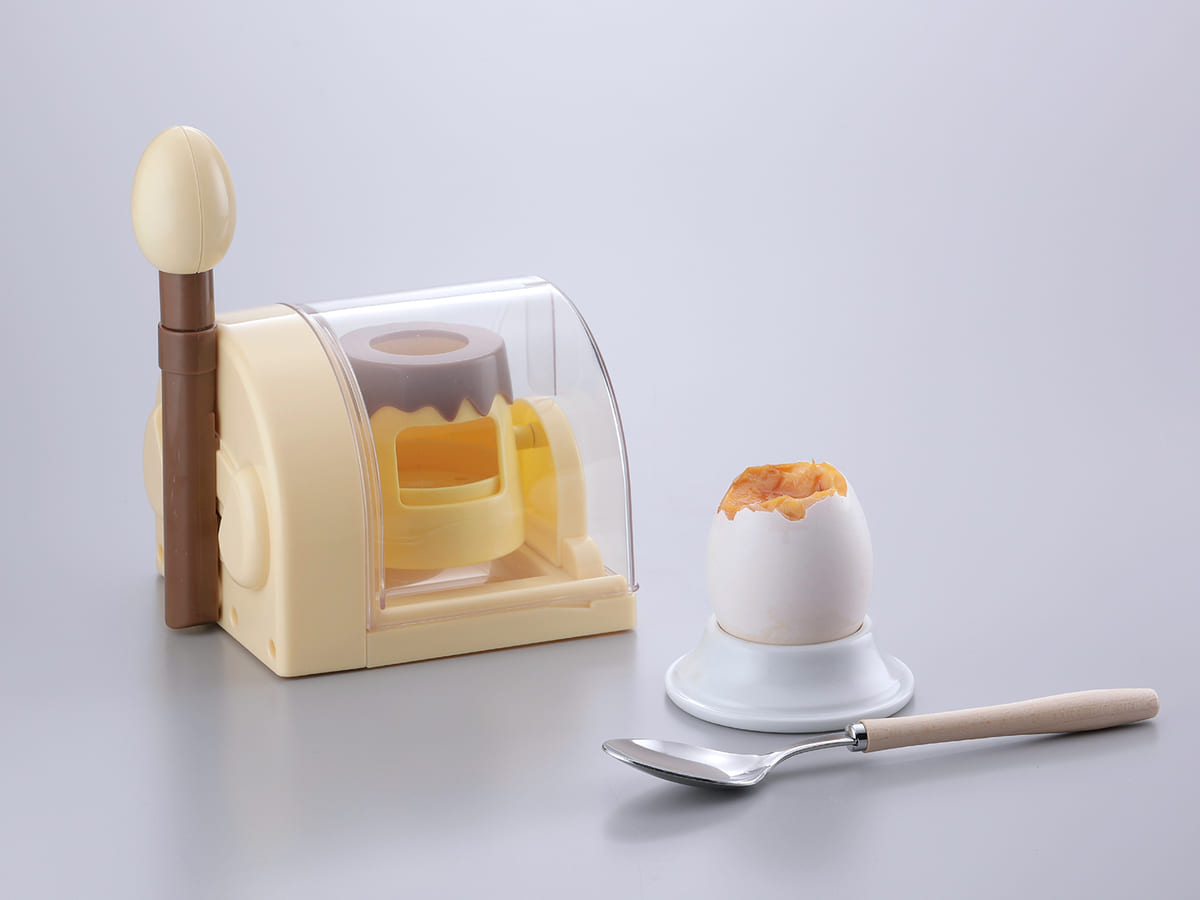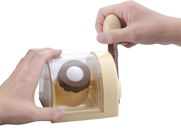 作り方は、本体にたまご1個をセットし、レバーを約2分間、勢いよく前後に動かします。