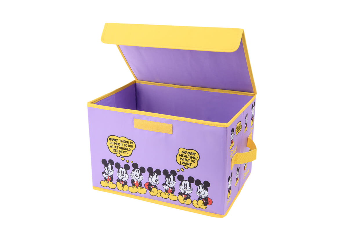 フードメニューの紙皿や紙コップなどをモチーフにしたデザインの収納ボックス。