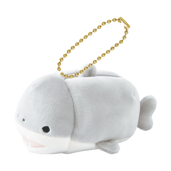 口元から鋭い牙を覗かせている「サメ」のミニポーチ。